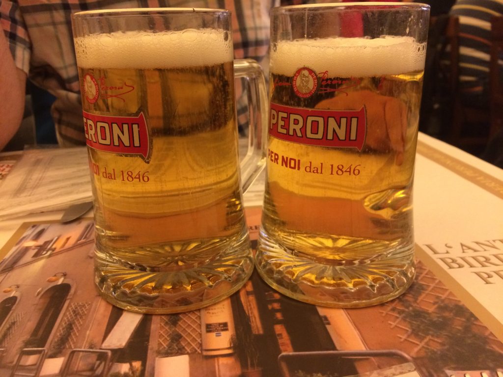 Il est plus de midi, on a faim alors on rentre dans la Brasserie Perroni, c’est typique. Il y a du monde dont les manifestants et les serveurs sont haut en couleur.