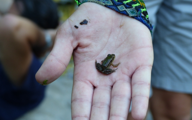 Notre objectif c’est un petit bain en rivière mais malheureusement cet été, la sécheresse ne permet qu’un bain de pied.